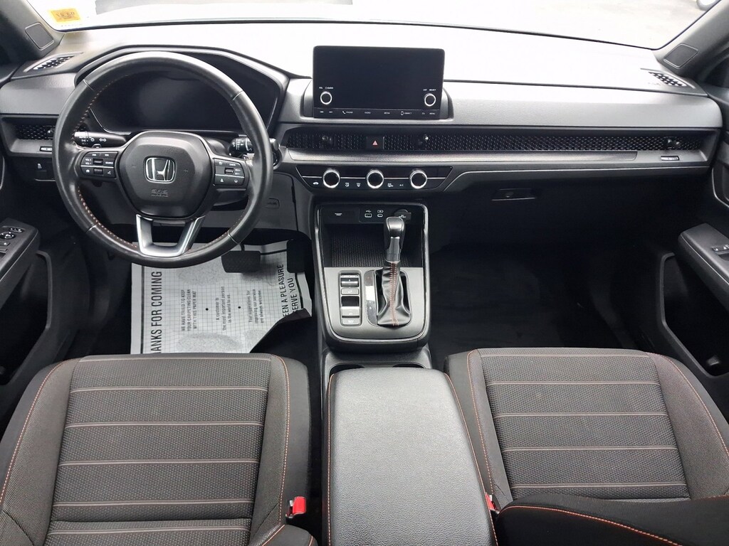 Step inside the CR-V Hybrid Sport and be enveloped in a cabin that seamlessly blends style and comfort. Luxurious cloth seating, a leather-wrapped steering wheel, and a host of intuitive technology features create an environment that caters to your every need.