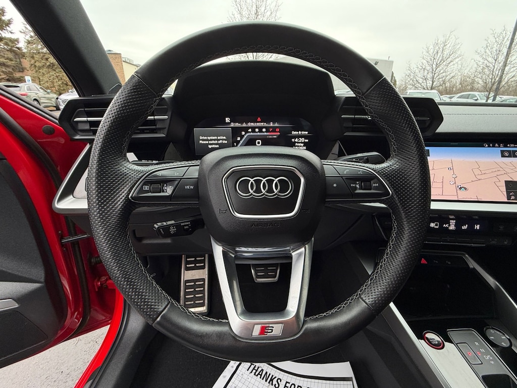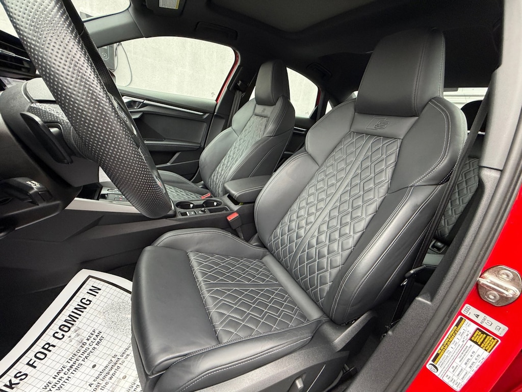 The Tango Red Metallic exterior paint, complemented by the sleek S3 design cues, creates a bold and captivating presence that is sure to turn heads wherever you go. Step inside the cabin, and you'll be enveloped in a refined, driver-focused environment, complete with premium leather seating, advanced technology, and a wealth of customizable settings to tailor the driving experience to your preferences.
