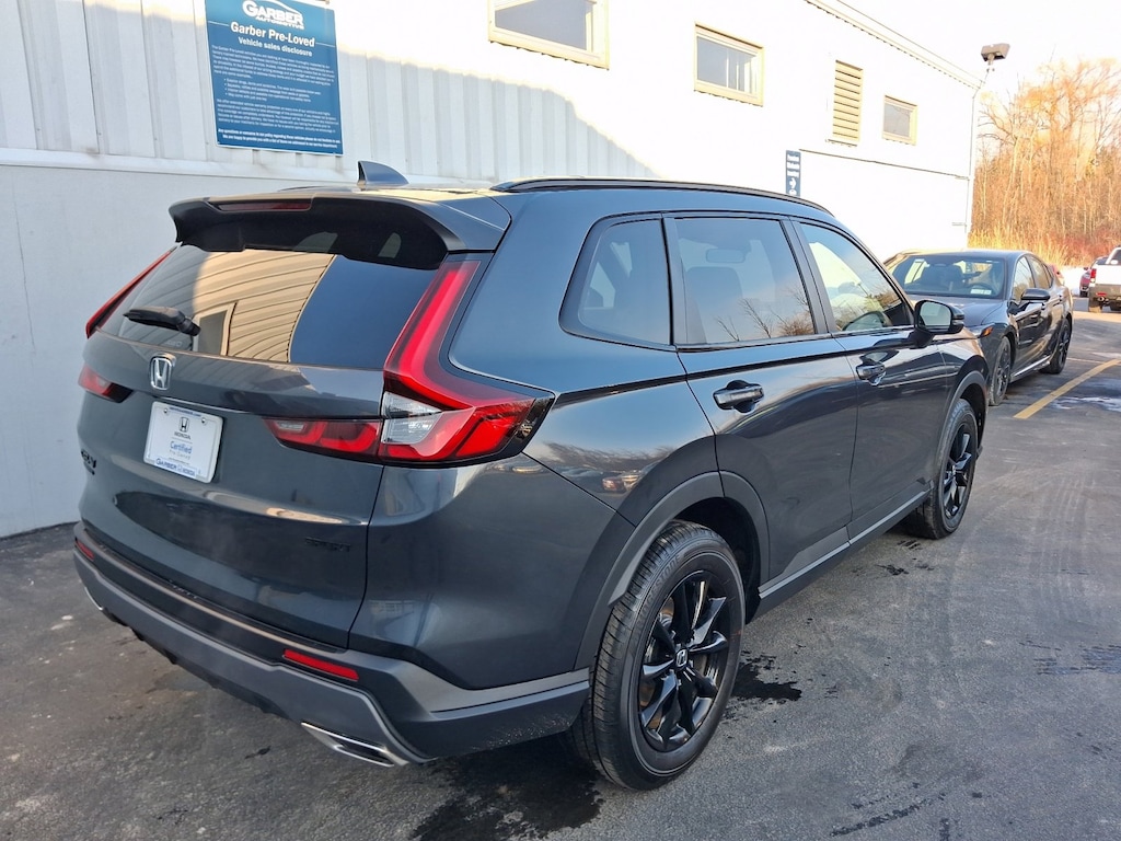 Elevate your driving experience with the CR-V Hybrid Sport's host of premium features. Indulge in the luxurious comfort of heated front seats, the convenience of a power moonroof, and the seamless integration of Apple CarPlay and Android Auto. Enhance your safety with advanced driver-assistance technologies, including Adaptive Cruise Control, Blind Spot Monitoring, and a Rear-View Camera.