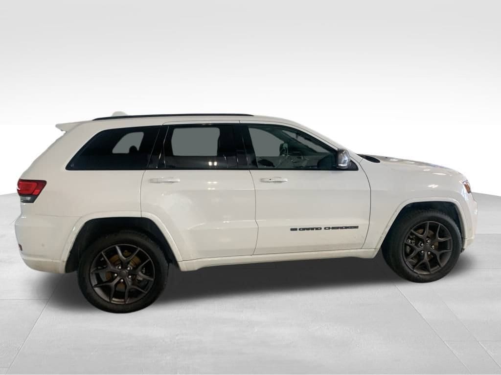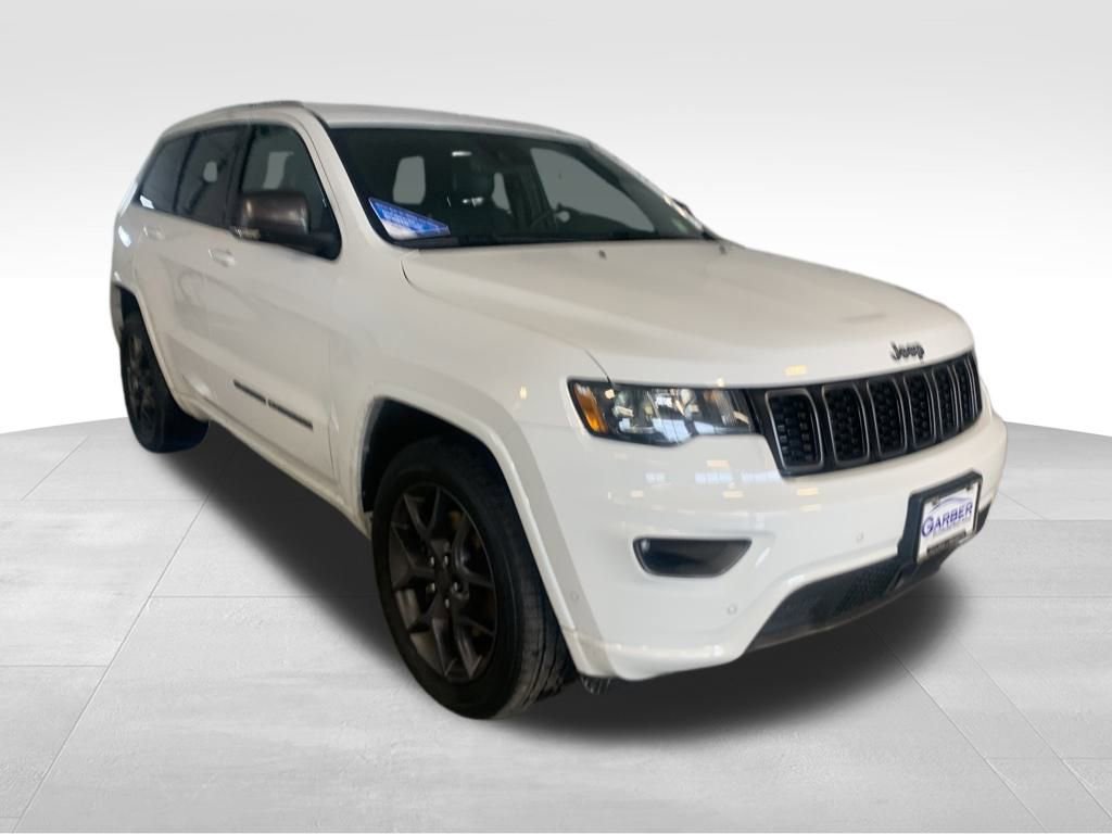 Elevate your driving experience with this exceptional 2021 Jeep Grand Cherokee 80th Anniversary Edition. This stunning SUV boasts a captivating white exterior and a meticulously designed interior, making it the perfect blend of rugged capability and refined sophistication.